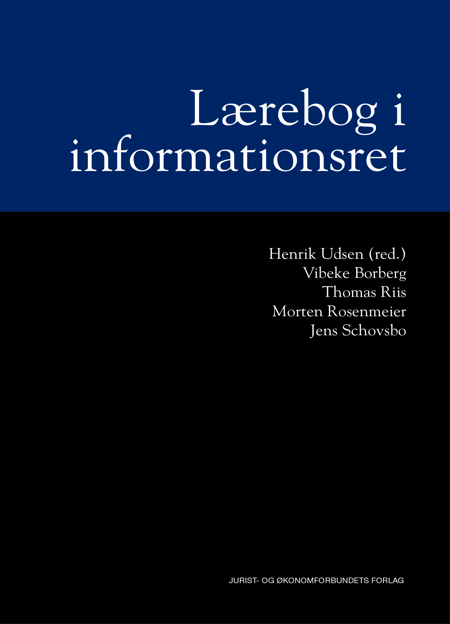 Lærebog i informationsret (1. udg.) 1. udgave - 19. august 2016 Af Henrik Udsen , Vibeke Borberg , Thomas Riis , Morten Rosenmeier og Jens Schovsbo Denne bog er ikke tilgængelig Du kan fortsat få adgang til bogen, ved at abonnere på Jurabibliotek. Har du allerede købt adgang? Log ind her