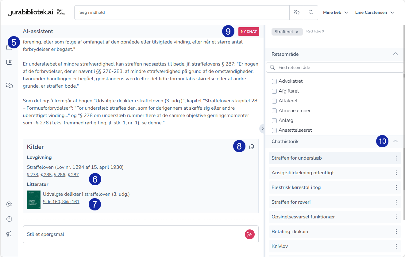 Med den globale AI-assistent kan du stille juridiske spørgsmål og få svar, som baserer sig på Jurabiblioteks aktuelle bøger og på den opdaterede lovgivning.