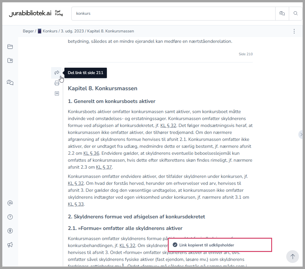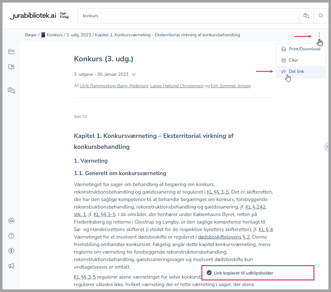 Du kan nemt linke til indholdet på Jurabibliotek. Du kan både linke til